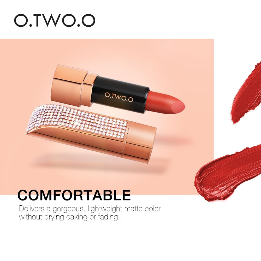 Conta com a qualidade O. TWO.O, lábios bonitos o dia todo, continuarão deslumbrantes por mais de 20 horas, à prova d'água.