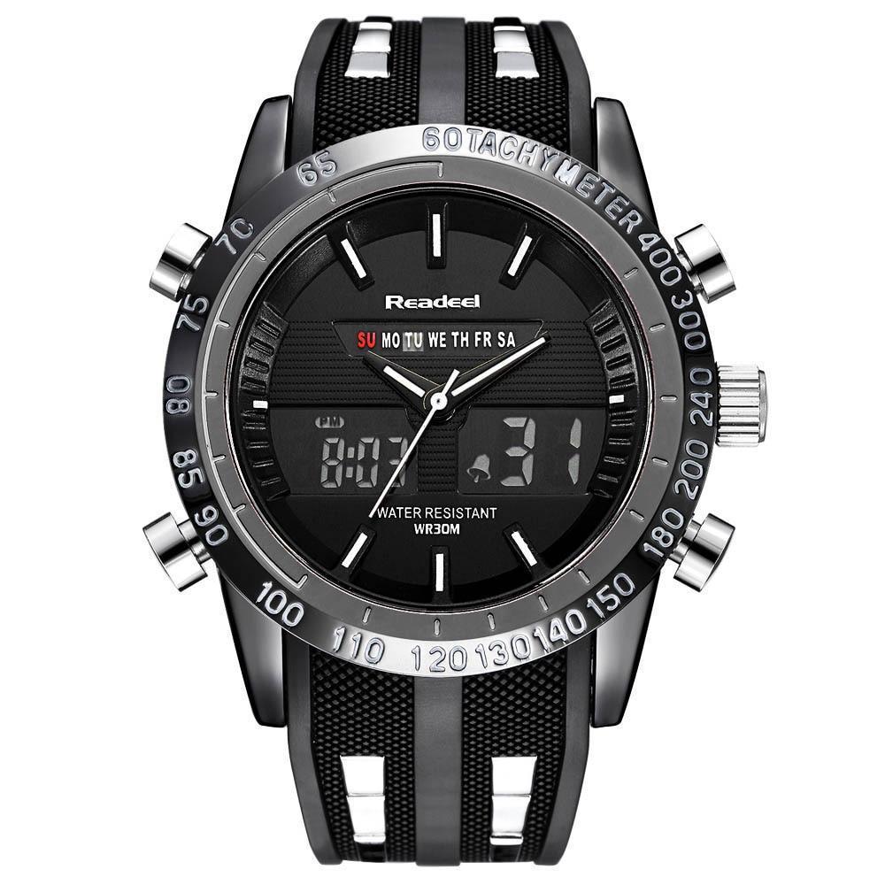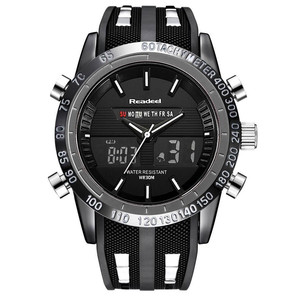- Característica:Alarme,À Prova D'Água,Resistente a Choques,Cronômetro,Calendário Completo,Múltiplos Fusos Horários,Cronógrafo,Data Automática,Display de LED